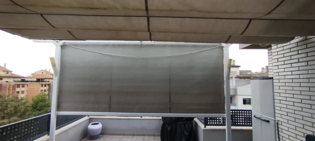 Detalles del productoToldo pérgola corredero, con sistema vertical integrado. Ideal para proteger del sol y crear un espacio más íntimo en tu terraza o balcón.