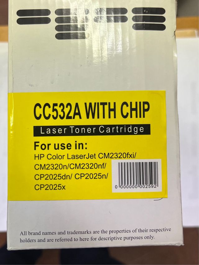 Detalles del productoTóner láser amarillo compatible HP, modelo CC532A, con chip incluido.