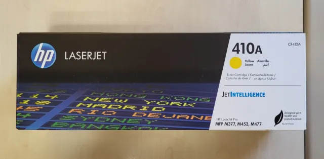 Tóner amarillo HP 410A para impresoras LaserJet Pro.