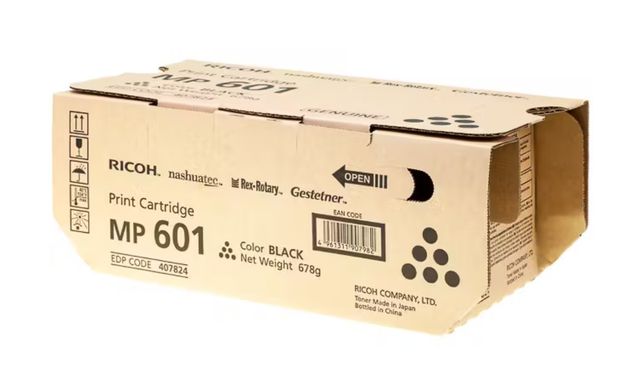 Cartucho de tóner RICOH MP 601 de color negro. El tóner está en su caja original. - Color: Negro - Peso neto: 678g - Código EDP: 407824