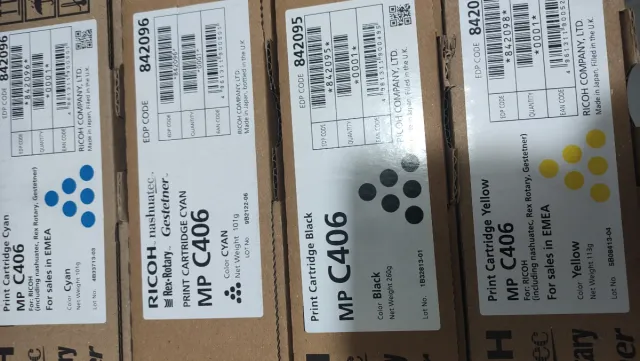 Tóner Ricoh MP C406 1BK, 1YW, 2CY.