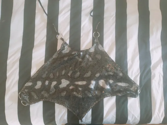Top artesanal lentejuelas plata y negro