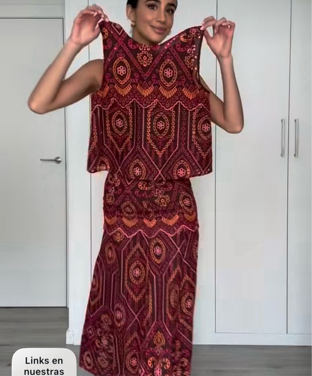 Look falda y top bordado perforado zara