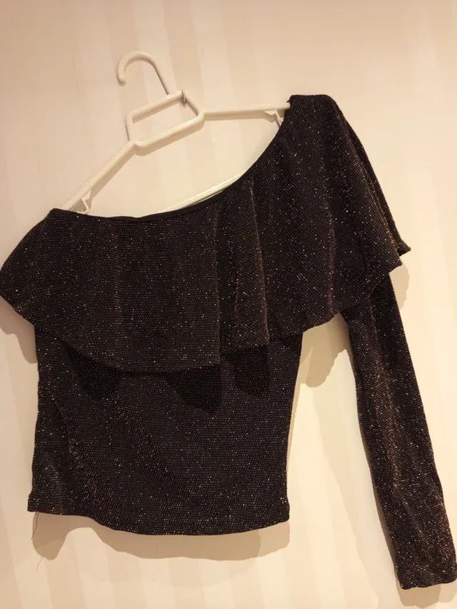 Top brillante asimétrico negro y dorado