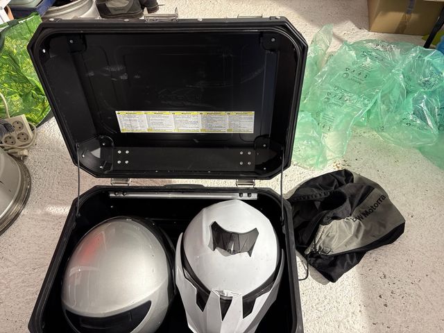 Detalles del productoTop case de aluminio. para 2 cascos integrales de moto Kappa Kventure en muy buen estado. Incluye la base y sus accesorios.Instalado en BMW 1200 GS. todo metalico y en estado excelente. Tiene un unico viaje.