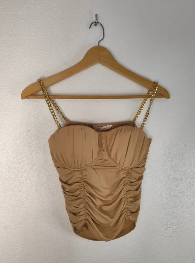 Top Corsé Beige con Tirantes Cadena Dorada Talla M