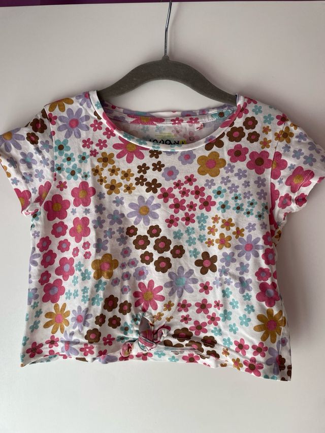 Detalles del productoPrecioso top corto con estampado floral vibrante y un detalle anudado en la parte delantera.