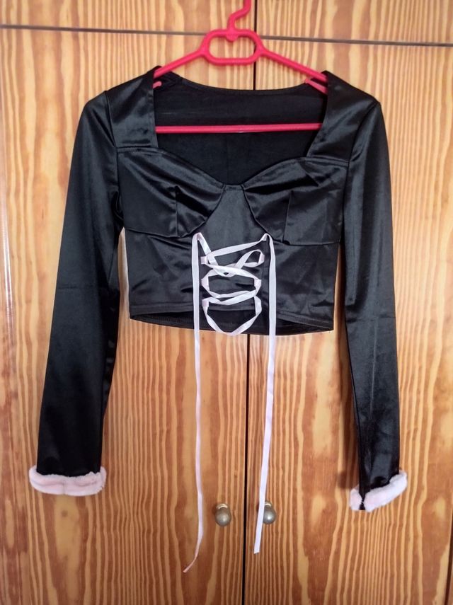 Top corto japonés negro lazo S