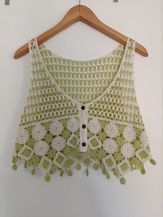 Top crochet verde y blanco