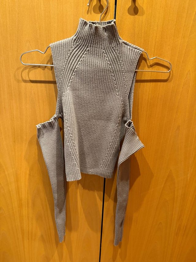 Top de punto con cuello alto y hombros descubierto
