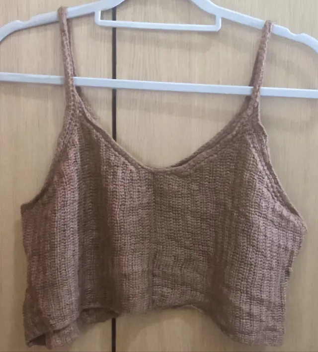 Top de punto marrón talla única