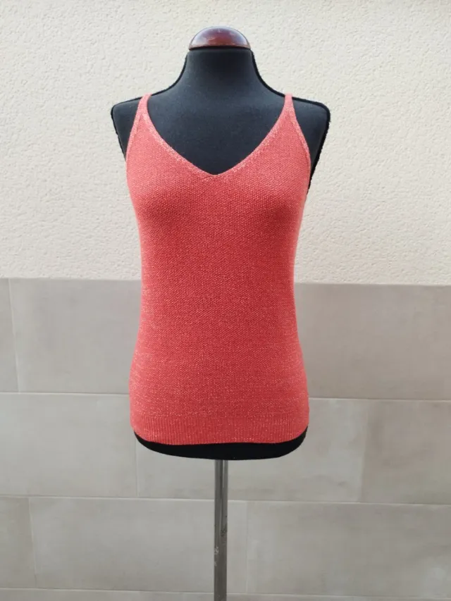 ✨Precioso top en color coral con un delicado brillo que aporta un toque sofisticado ✨ Ideal tanto para looks de día como para ocasiones especiales.