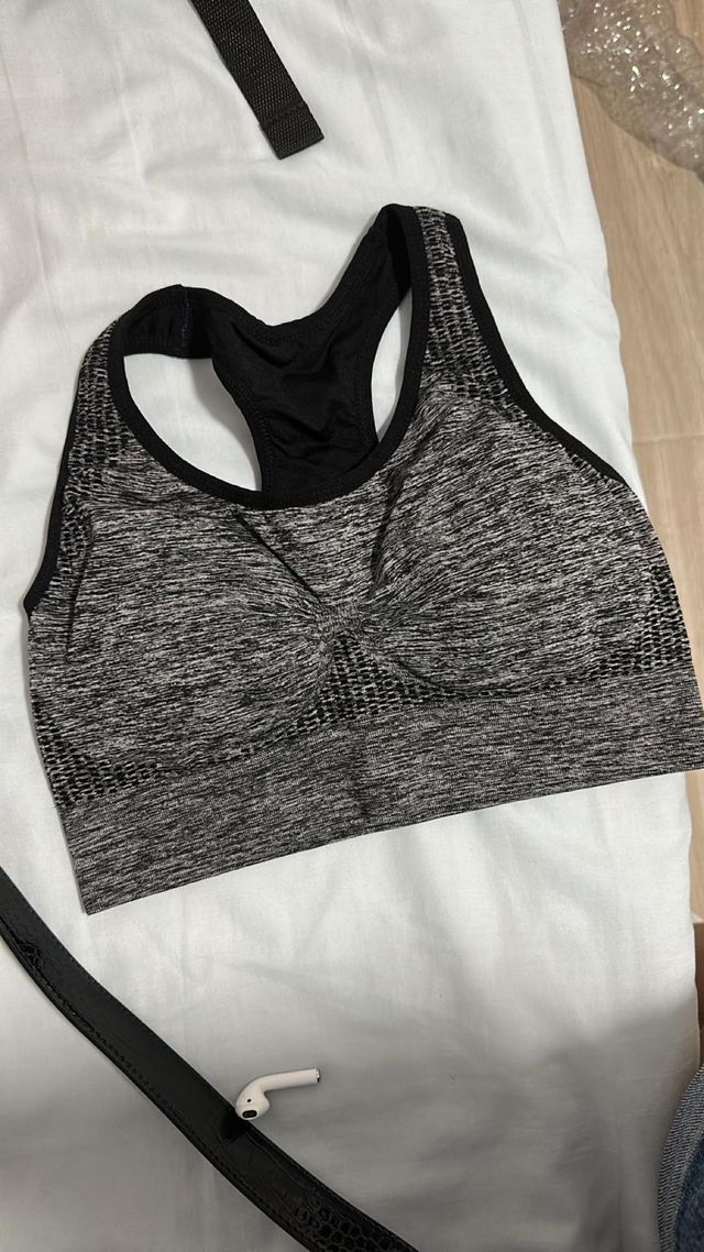 Top deportivo gris y negro . Nuevo!