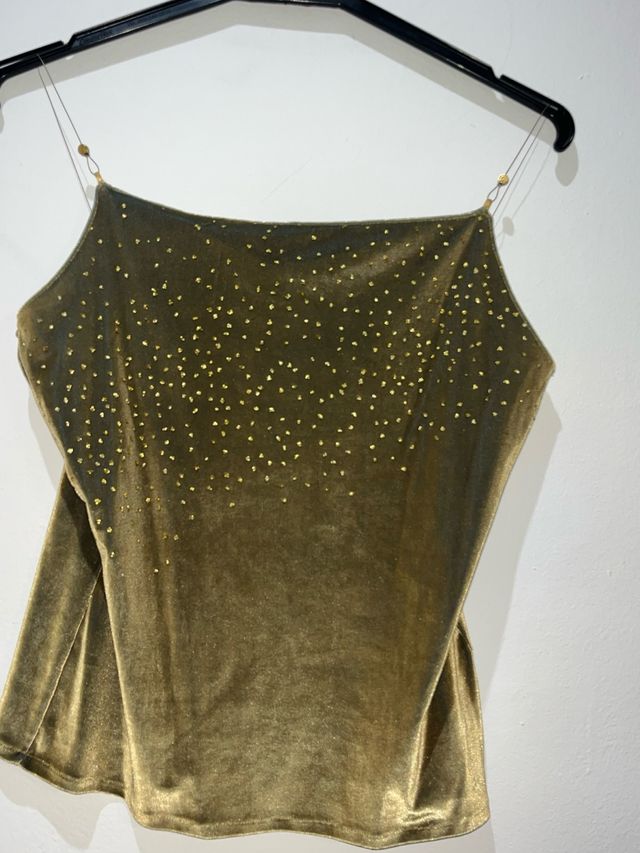 Top fiesta terciopelo y lentejuelas dorado talla M
