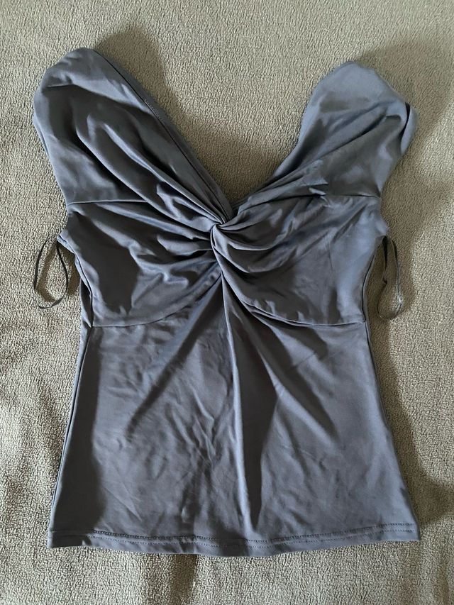 Top gris drapeado
