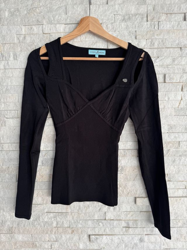 Top Guess Negro Manga Larga