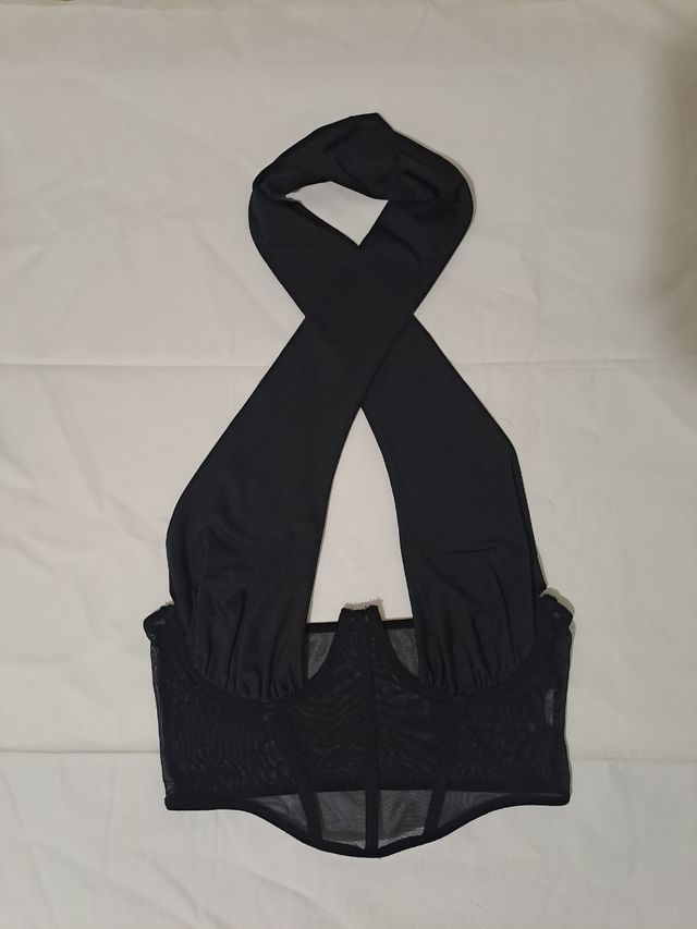 Top halter negro con corsé de malla