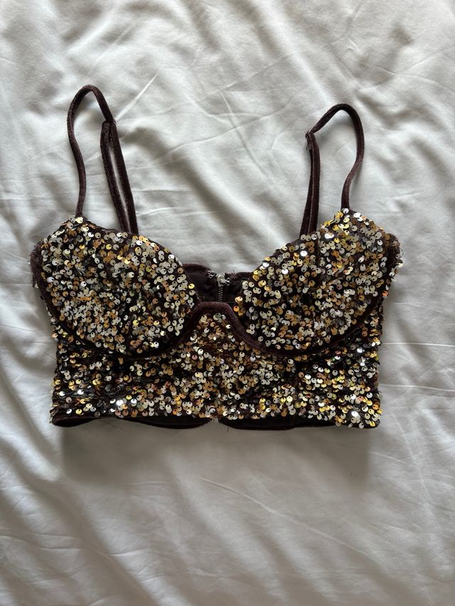 Top lentejuelas marrón y dorado