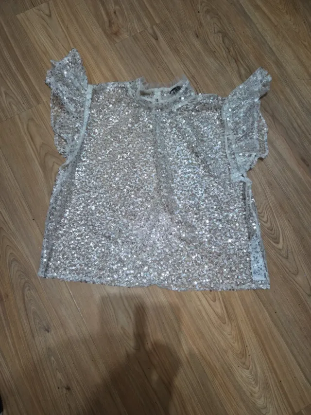 Top lentejuelas plateadas volantes