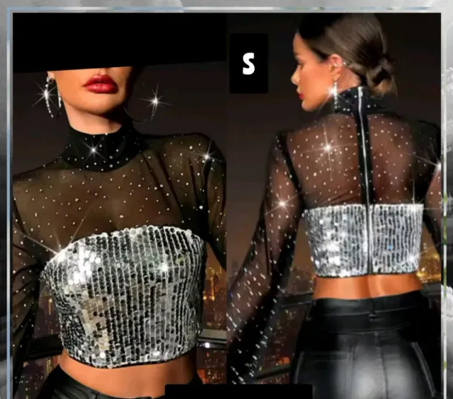 Top lentejuelas y rejilla S
