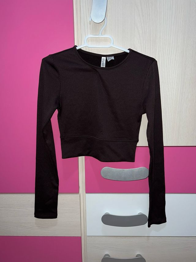 Top manga larga Divided marrón