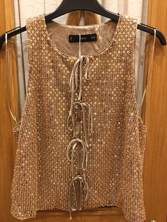 Top Mango lentejuelas dorado talla S