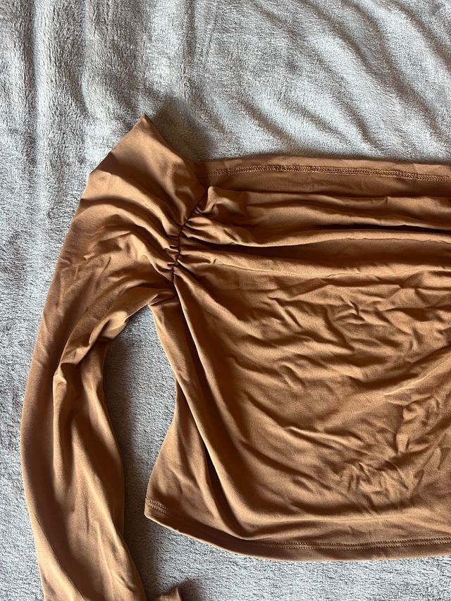 Top marrón fruncido manga larga
