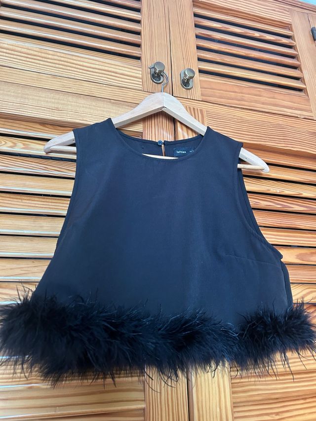 Top negro con plumas