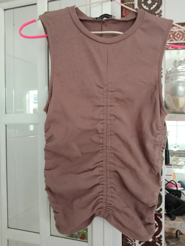 Top rosa fruncido sin mangas
