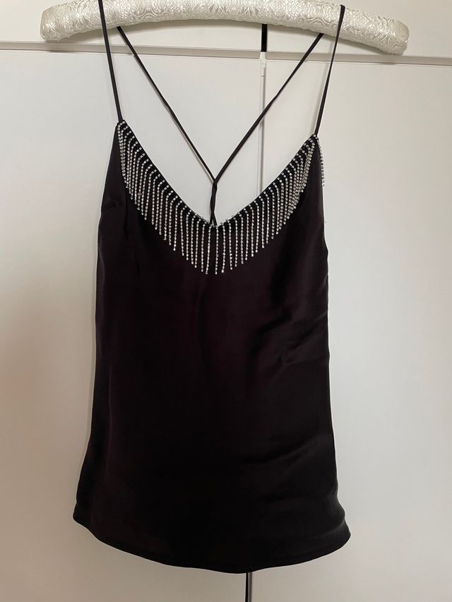 Top satén con pedrería