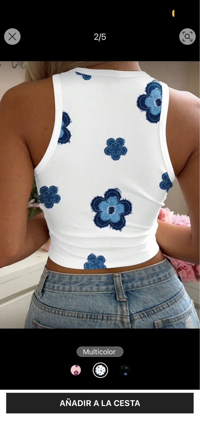 Top SHEIN blanco flores azules sin estrenar
