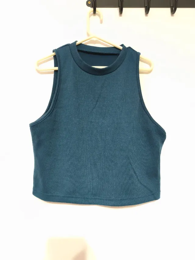Top sin mangas color verde azulado