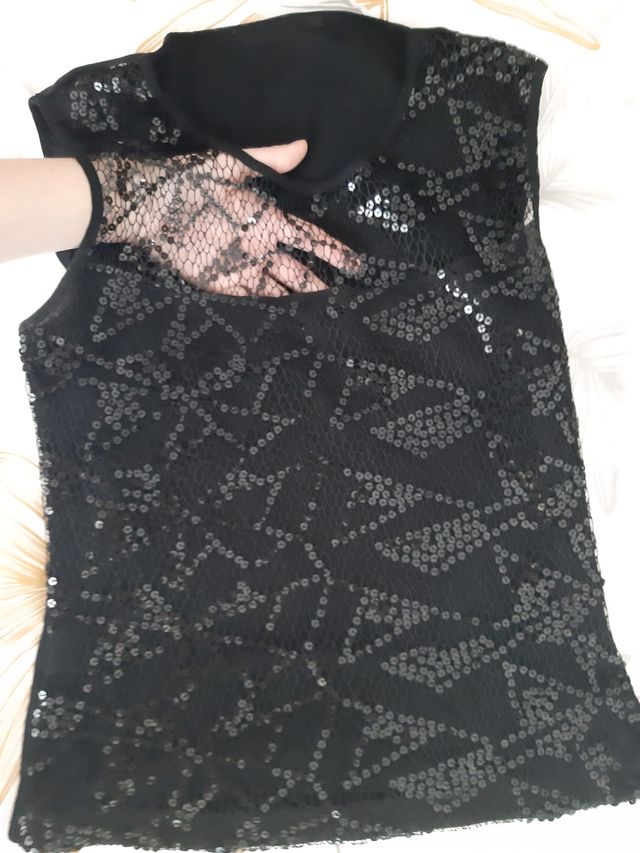 Top sin mangas de lentejuelas. Nuevo. Color negro.