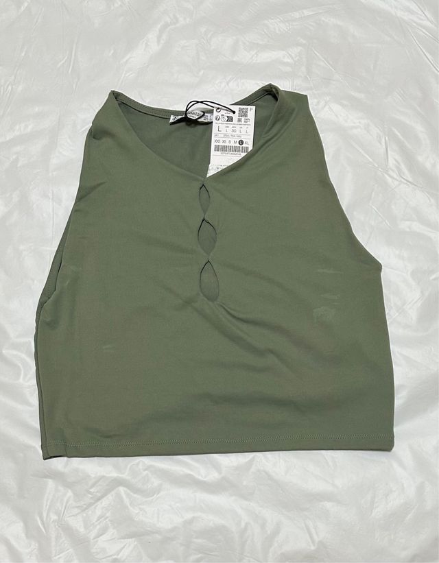 Top verde con aberturas talla L