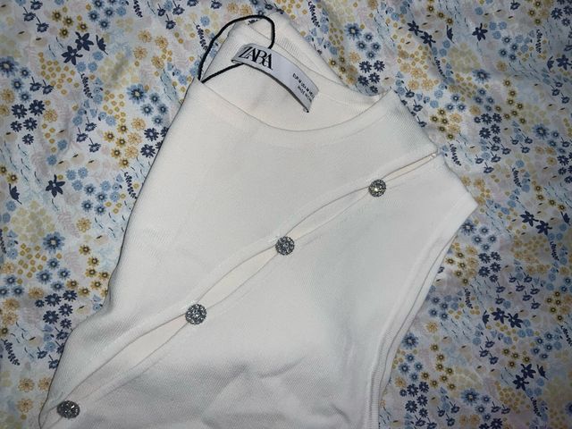 Top Zara blanco con pedrería
