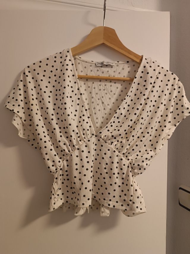 Top Zara lunares blanco y negro talla S