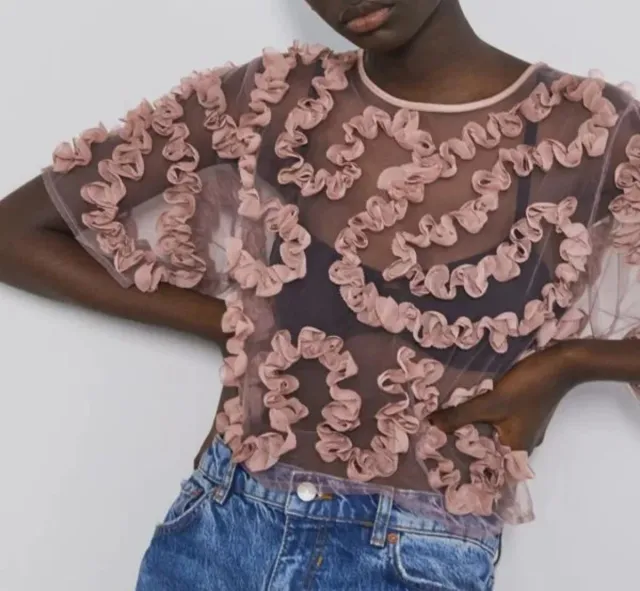 Top Zara rosa volantes transparente