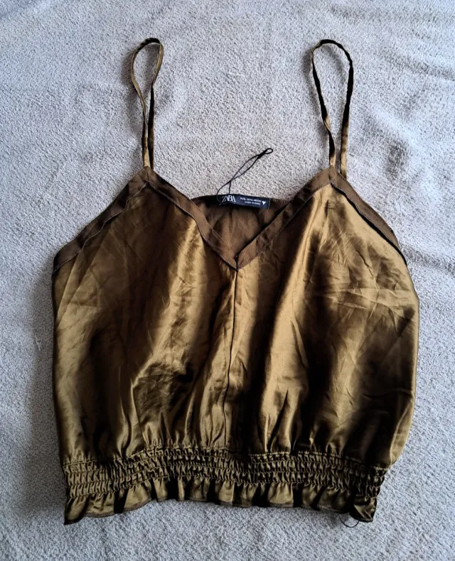 Top Zara Satén Dorado/Verde