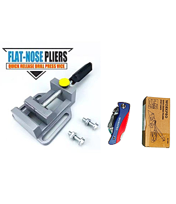 Detalles del productoMordaza o tornillo de banco de aluminio, para taladro de columna, de 70mm de ancho de apriete y unos casi 70mm de apertura, con botón de liberación rápida. Nueva, sin usar. + Cúter plegable WORKPRO uso profesional, cambio rápido, sólido y 5 cuchillas en el cuerpo incluidas. Todo nuevo.