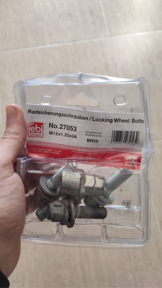 Vendo tornillos antirrobo llantas marca Febi Bilstein M12X1,25X34 en perfecto estado, solo se ha utilizado uno de ellos.