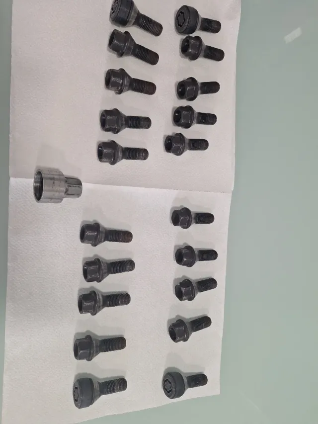Detalles del productoSet de tornillos para llantas de BMW. Incluye un total de 16 tornillos, 16 de ellos son estándar y 4 es de seguridad con su llave.
