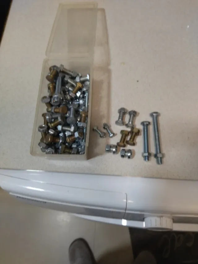 Lote de tornillos y tuercas de diferentes tamaños y materiales. - Incluye tornillos de cabeza hexagonal y tuercas. - Variedad de longitudes y diámetros.