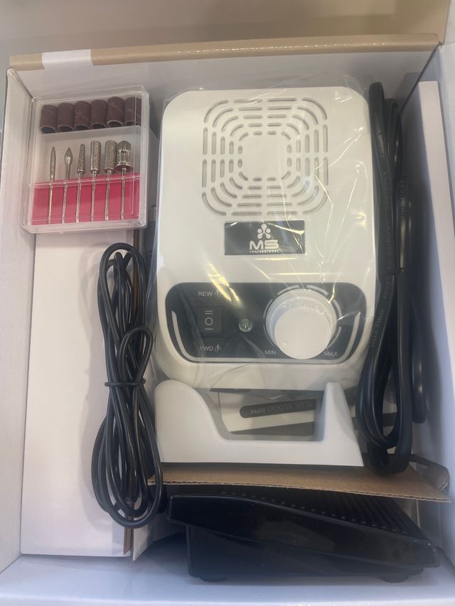 Detalles del productoTorno eléctrico para manicura y pedicura, ideal para uso profesional o personal. 35000 rpm.Incluye un set de fresas.