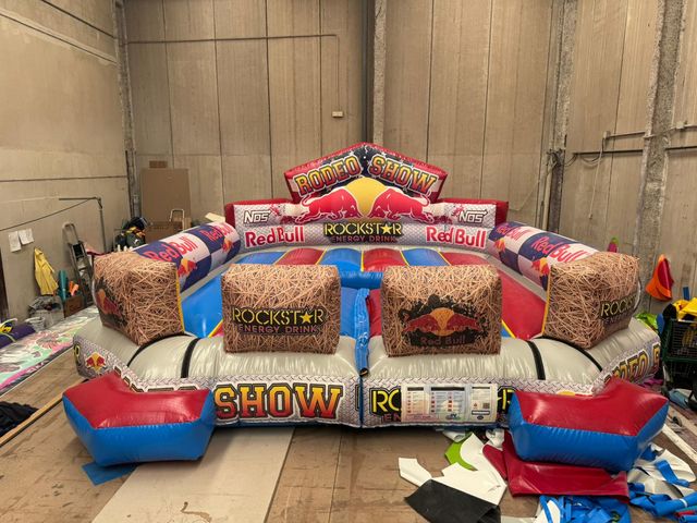 - Incluye plataforma hinchable, toro, colchoneta protección, cuadro mandos, turbina 1.5cv