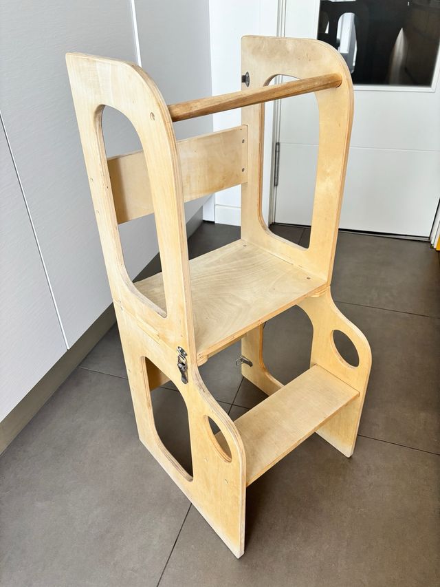 Detalles del productoTorre de aprendizaje de madera, versátil y segura para los más pequeños. Perfecta para cocina y/o baño