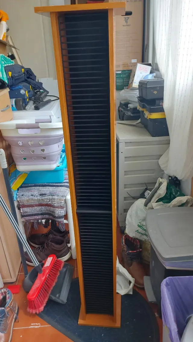 Torre organizadora para CDs en perfecto estado, casi sin uso.Tengo 3.Caben unos 80 Cd,s aproximadamente. - Diseño vertical y compacto. - Color madera clara y negro.