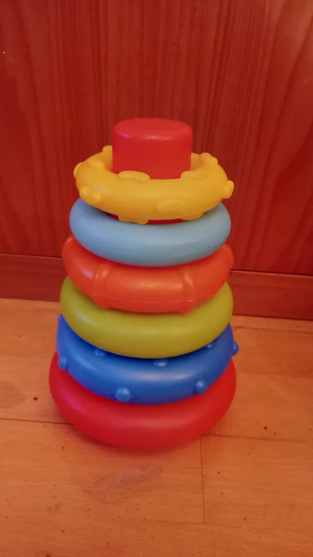 Detalles del productoJuego de aros apilables de texturas y colores para bebés y niños pequeños. Fomenta la coordinación mano-ojo y el reconocimiento de colores.