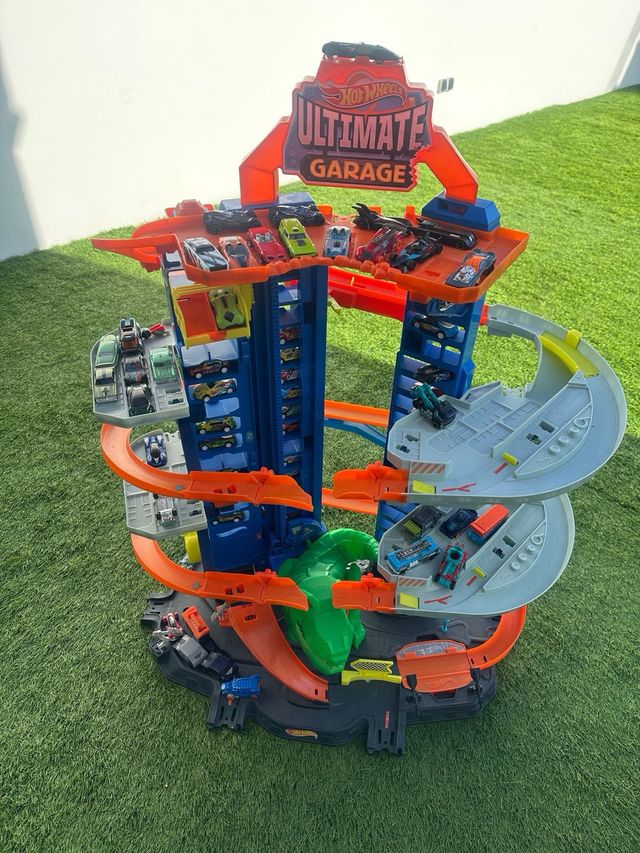 Detalles del productoTorre de garaje Hot Wheels Ultimate con múltiples niveles y rampas.