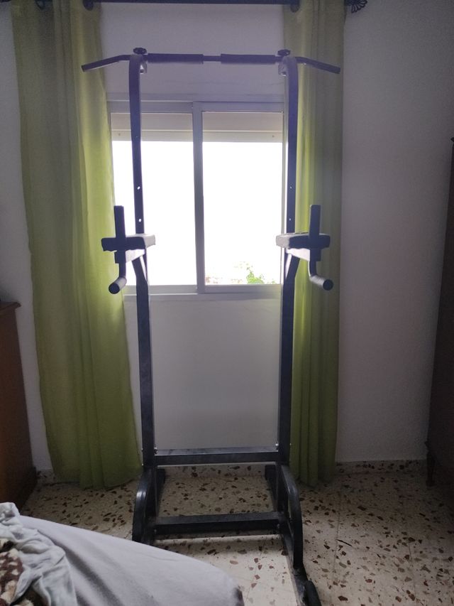 Detalles del productovendo torre de dominadas multiusos, zona de abajo para flexiones, zona intermedia para abdominales y fondos, zona de arriba ajustable de diferentes alturas para hacer dominadas normales como abiertas. Si es cerca no me importa llevártela y montartela por 10 eurillos más Medidas del producto