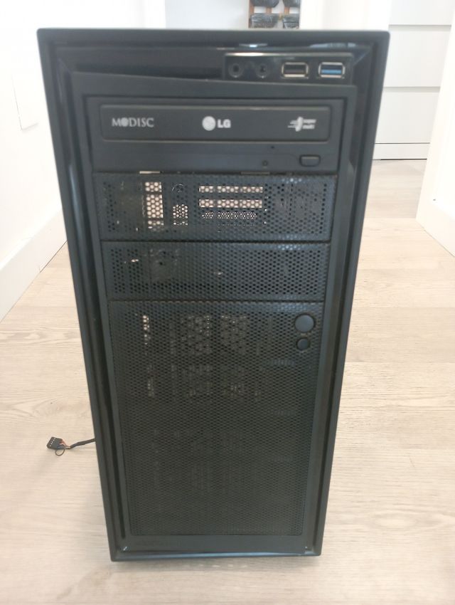 Torre negra para pc. Incluye lectora de cd y cables de conexión a placa base.